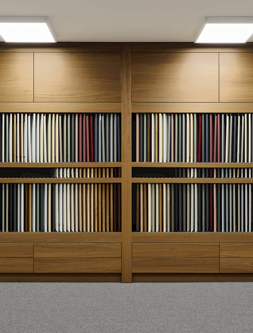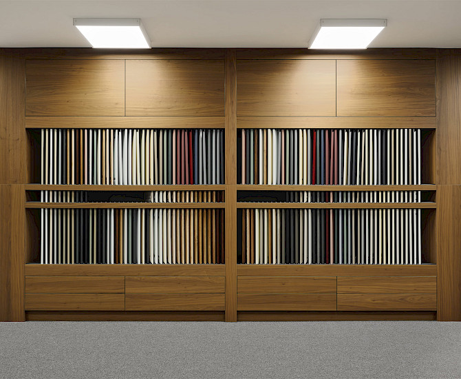Tervezőjével a helyszínen is átbeszélhetik a részleteket az erre a célra kialakított tárgyalóasztaloknál, együtt kiválaszthatják a megfelelő színt, a marásmintát és a technológiát.